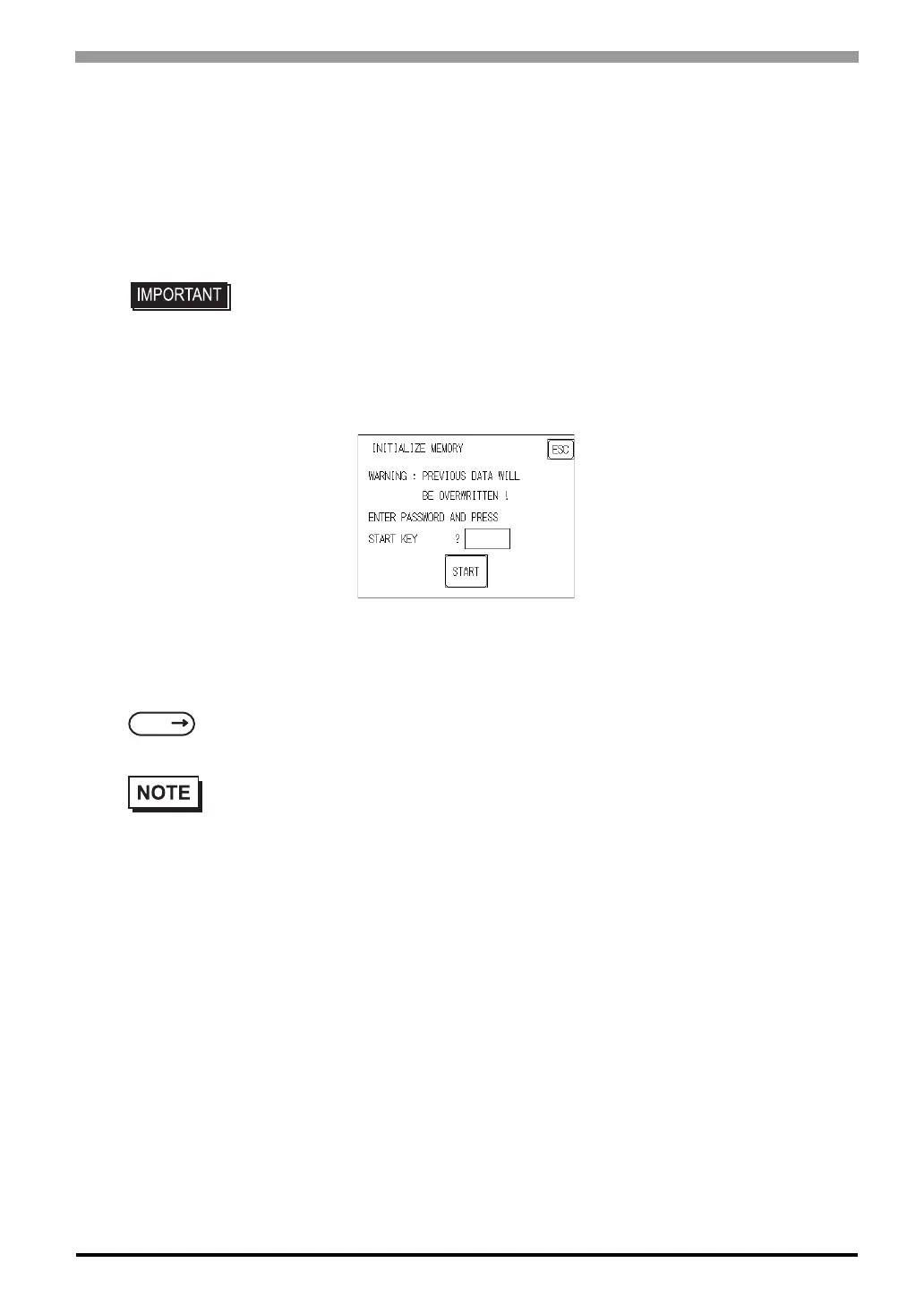 To initialize the ST internal memory, enter the common password 1101, or the password entered in the SYS-