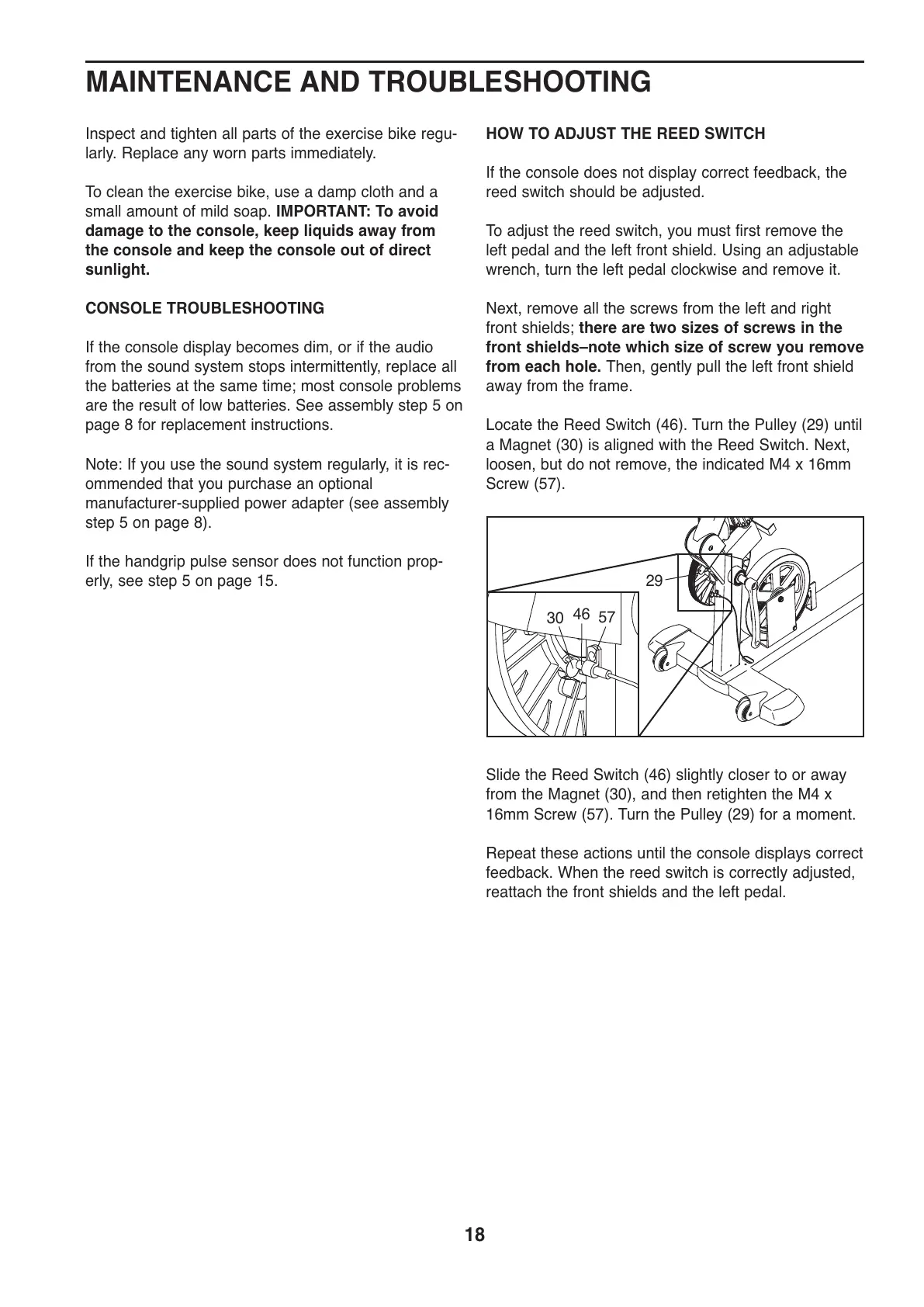 Locate the Reed Switch (46). Turn the Pulley (29) until