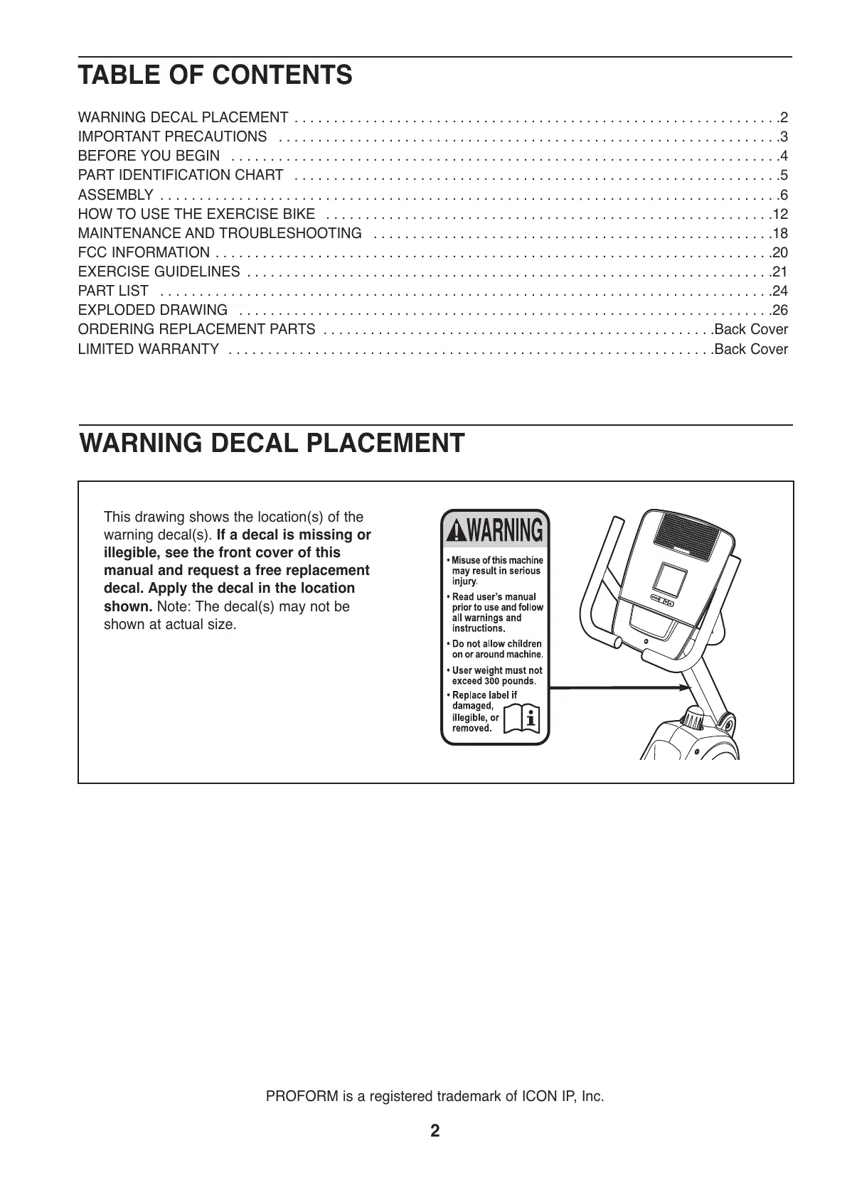 PROFORM is a registered trademark of ICON IP, Inc.