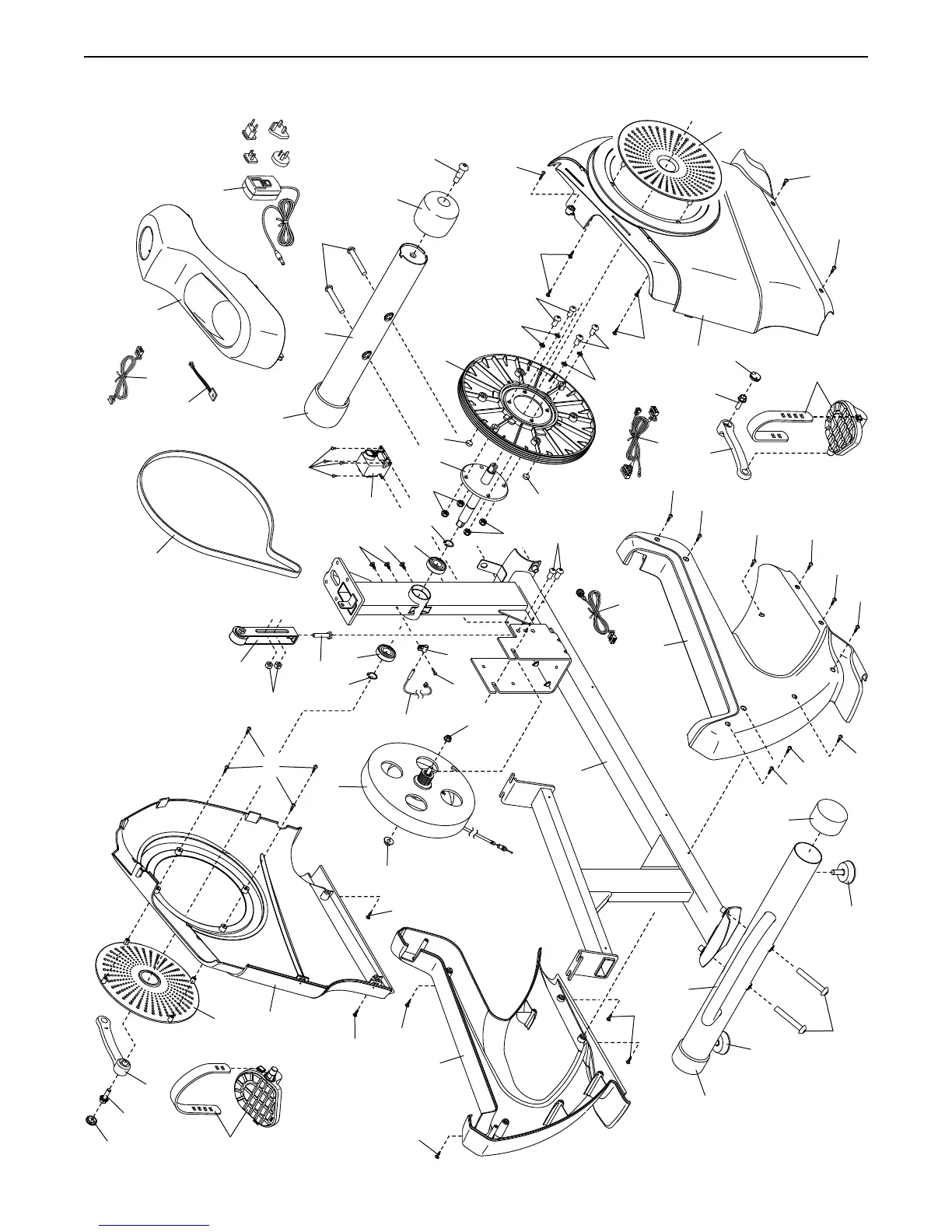 Pro-Form 350 CSX - EXPLODED DRAWING B: DRIVE AND BASE; Drive System and Pedal Assembly View; Base Frame and Wheel Assembly View