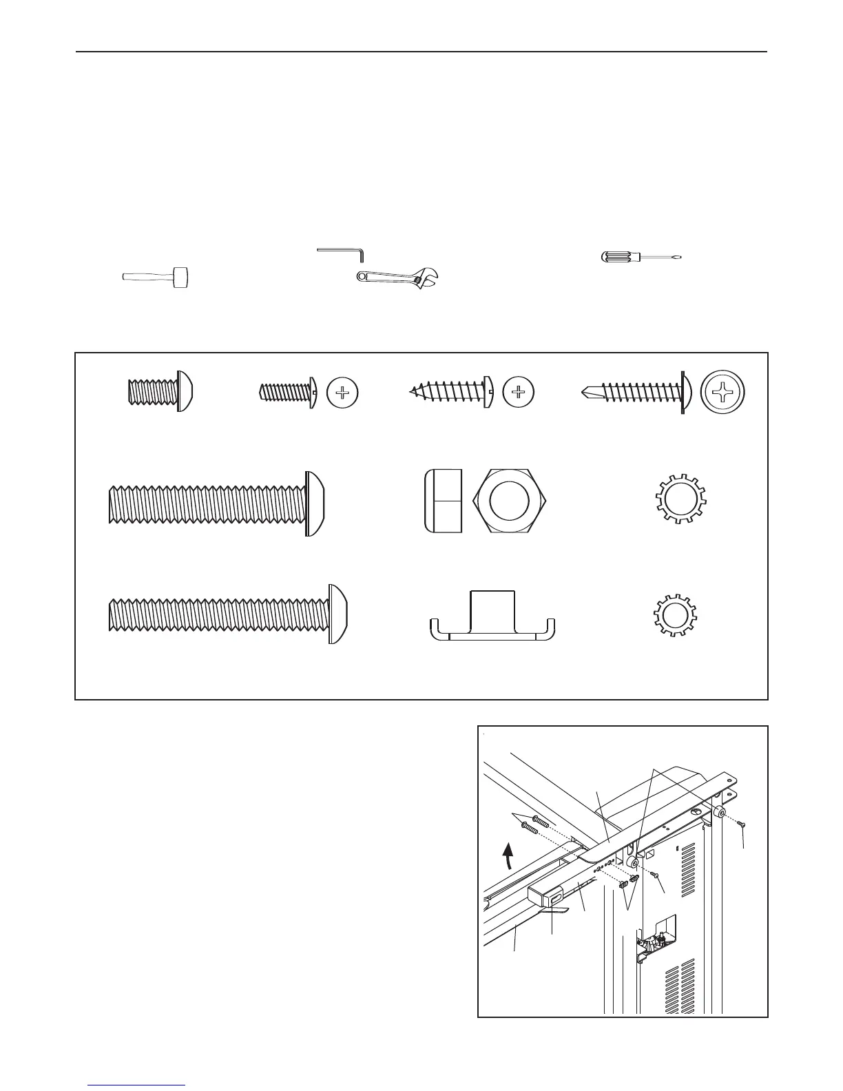 For help identifying the assembly hardware, see the drawings below.