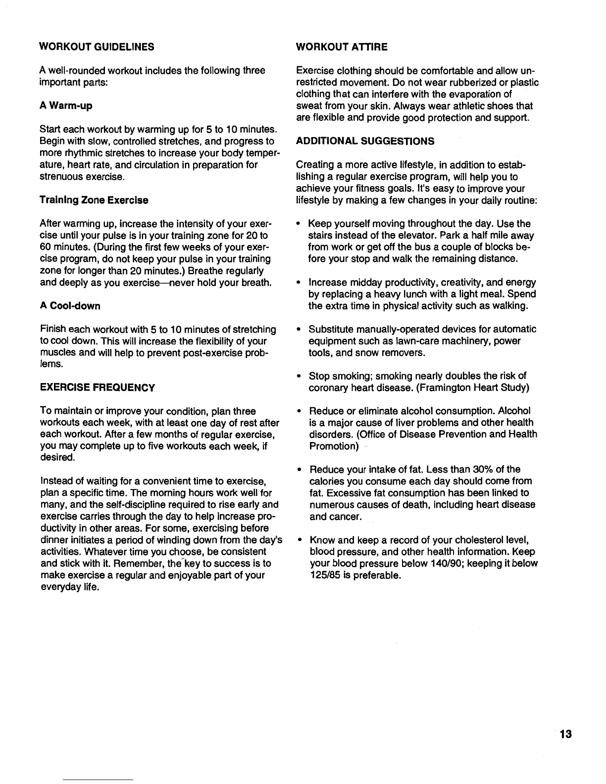 Pro-Form 375e - Workout Planning and Lifestyle; Workout Structure and Frequency; Attire and Health Tips