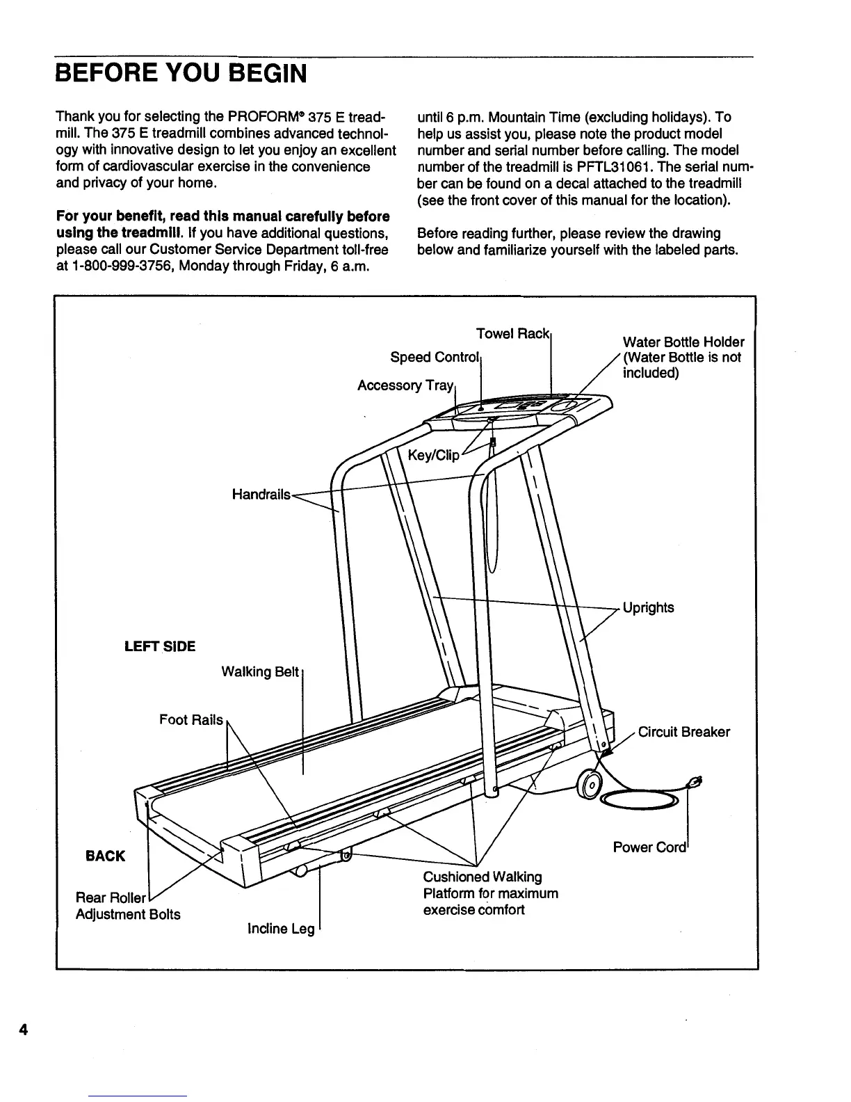 Pro-Form 375e - Introduction to Your Treadmill; Welcome and Treadmill Features; Treadmill Component Diagram