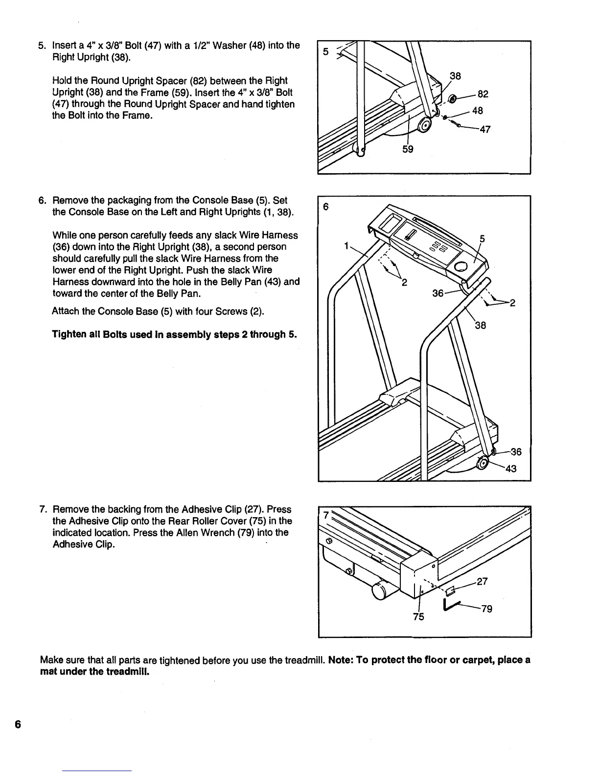 Pro-Form 375e - Completing Treadmill Assembly; Console and Wire Harness Installation; Final Assembly Checks