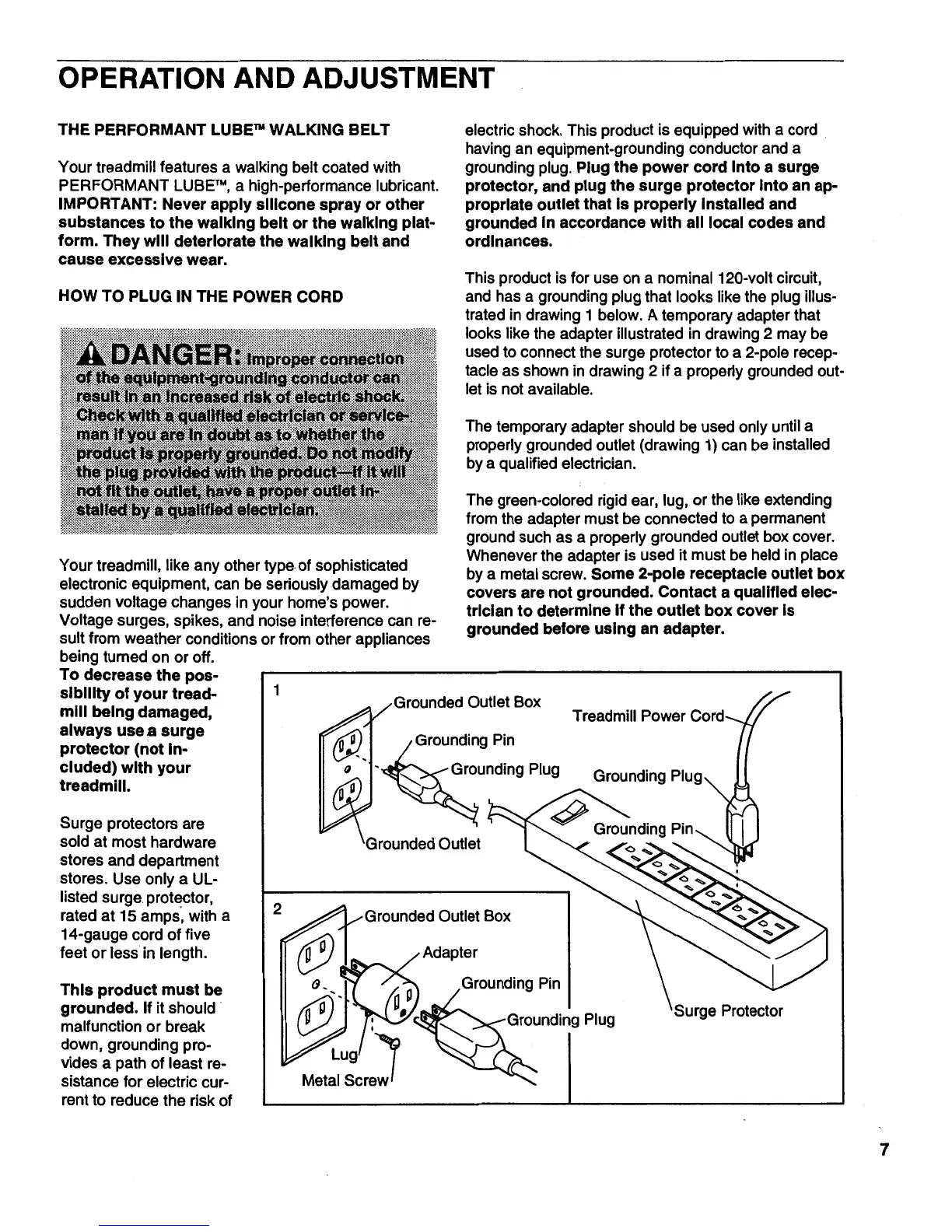 Pro-Form 375e - Operation and Power Connection; Walking Belt Lubrication Note; Safe Electrical Power Connection