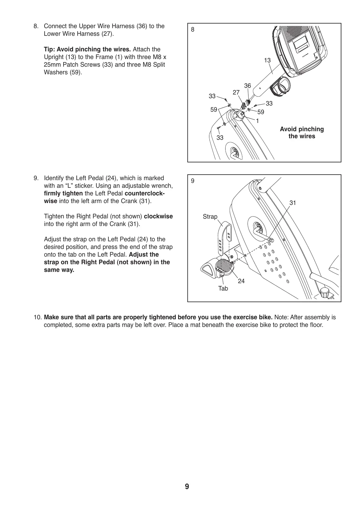 10. Make sure that all parts are properly tightened before you use the exercise bike. Note: After assembly is