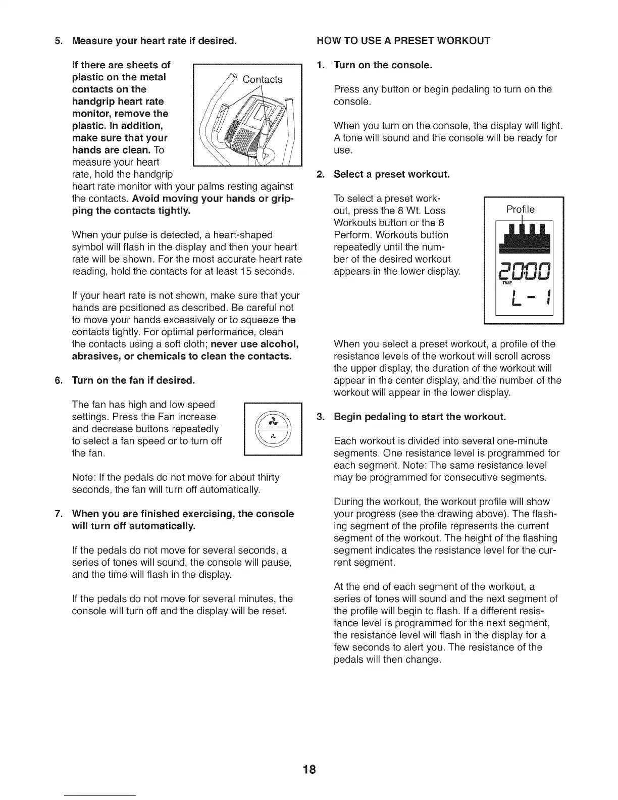 5. Measure your heart rate if desired. HOW TO USE A PRESET WORKOUT