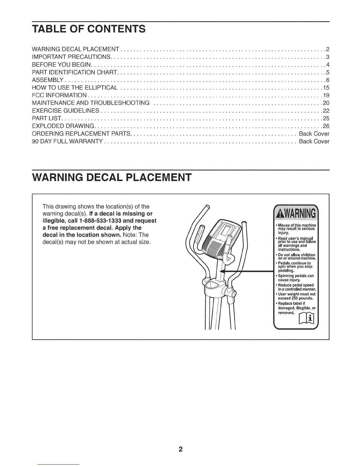 HOW TO USE THE ELLIPTICAL .............................................................. 15