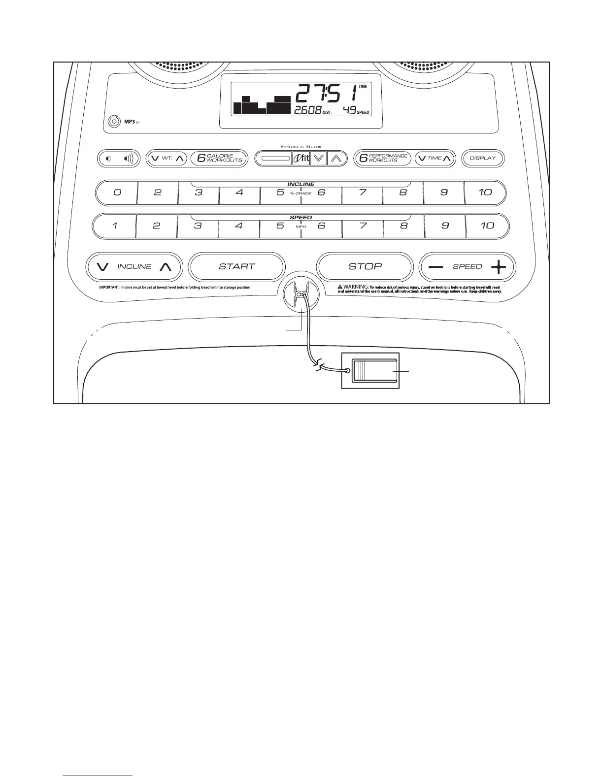 cally controls the speed and incline of the treadmill as