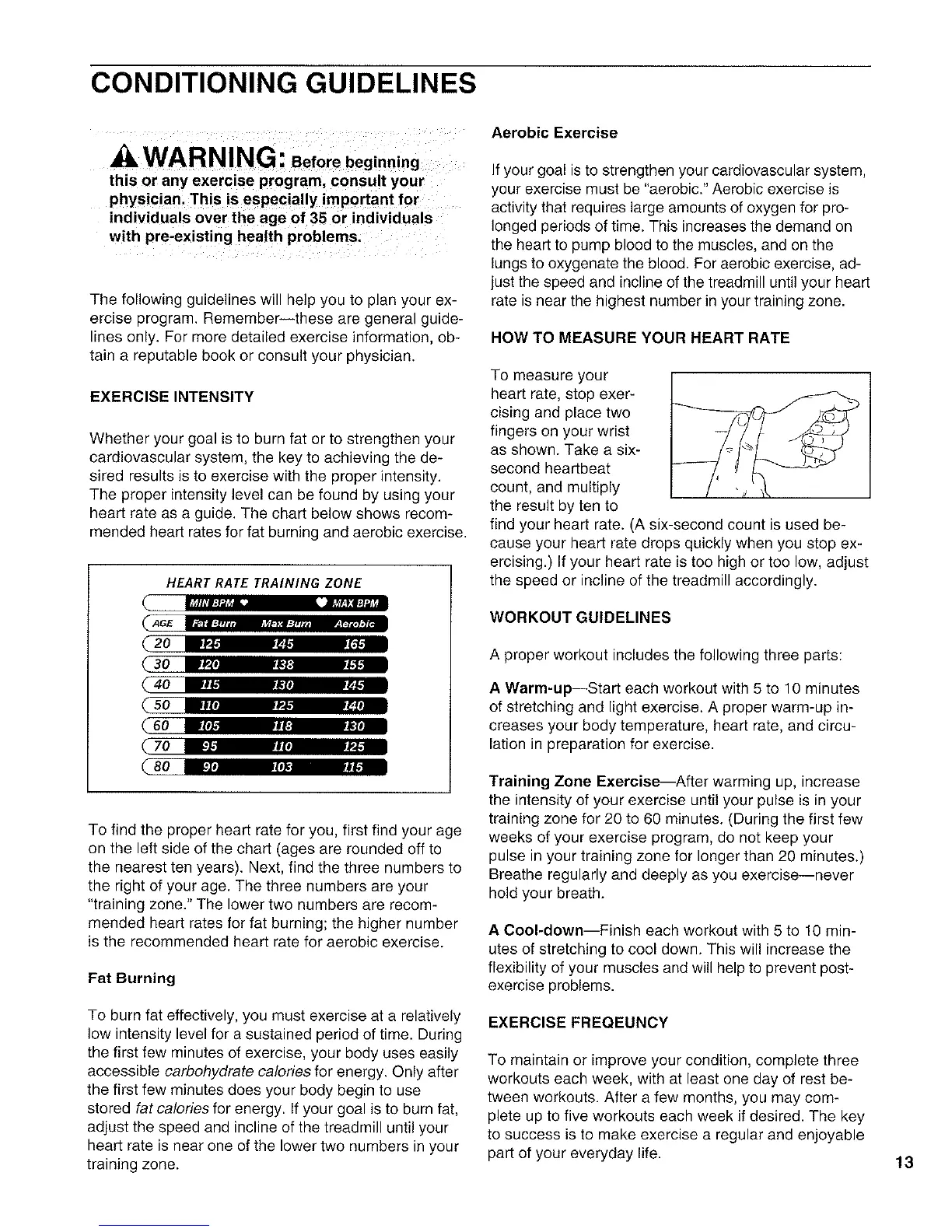 Pro-Form 435ex Treadmill - Conditioning Guidelines; Exercise Intensity; Fat Burning; Aerobic Exercise