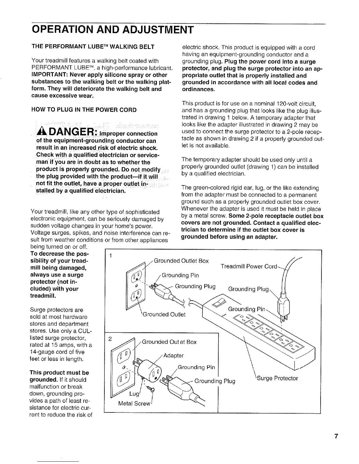 Pro-Form 435ex Treadmill - Operation and Adjustment; The Performant Lube Walking Belt; How to Plug in the Power Cord