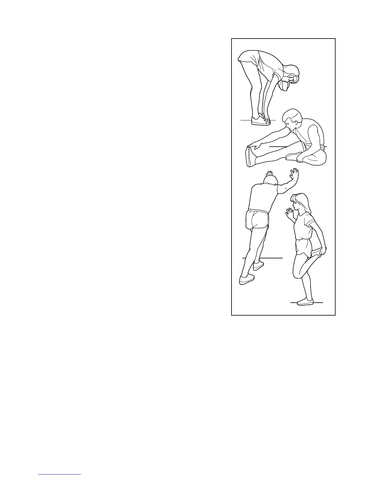 The correct form for several basic stretches is shown at the right.