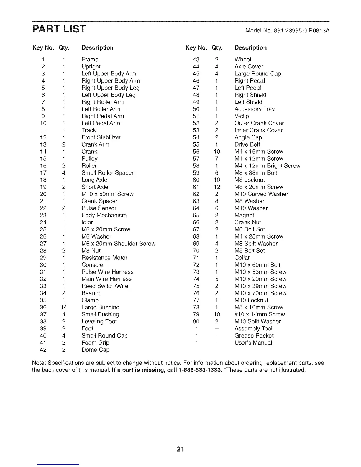 the back cover of this manual, if a part is missing, call 1-888-533-1333. *These parts are not illustrated.