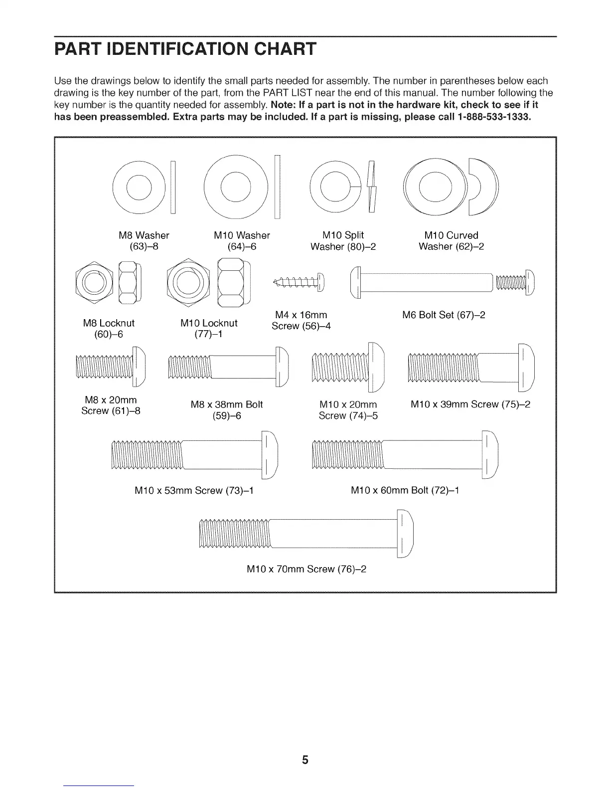 key number is the quantity needed for assembly. Note: If a part is not in the hardware kit, check to see if it