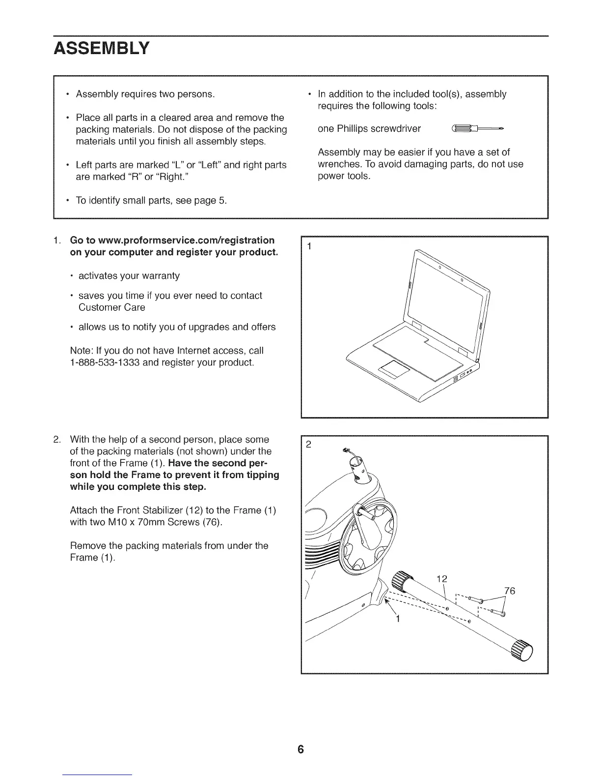 Attach the Front Stabilizer (12) to the Frame (1)