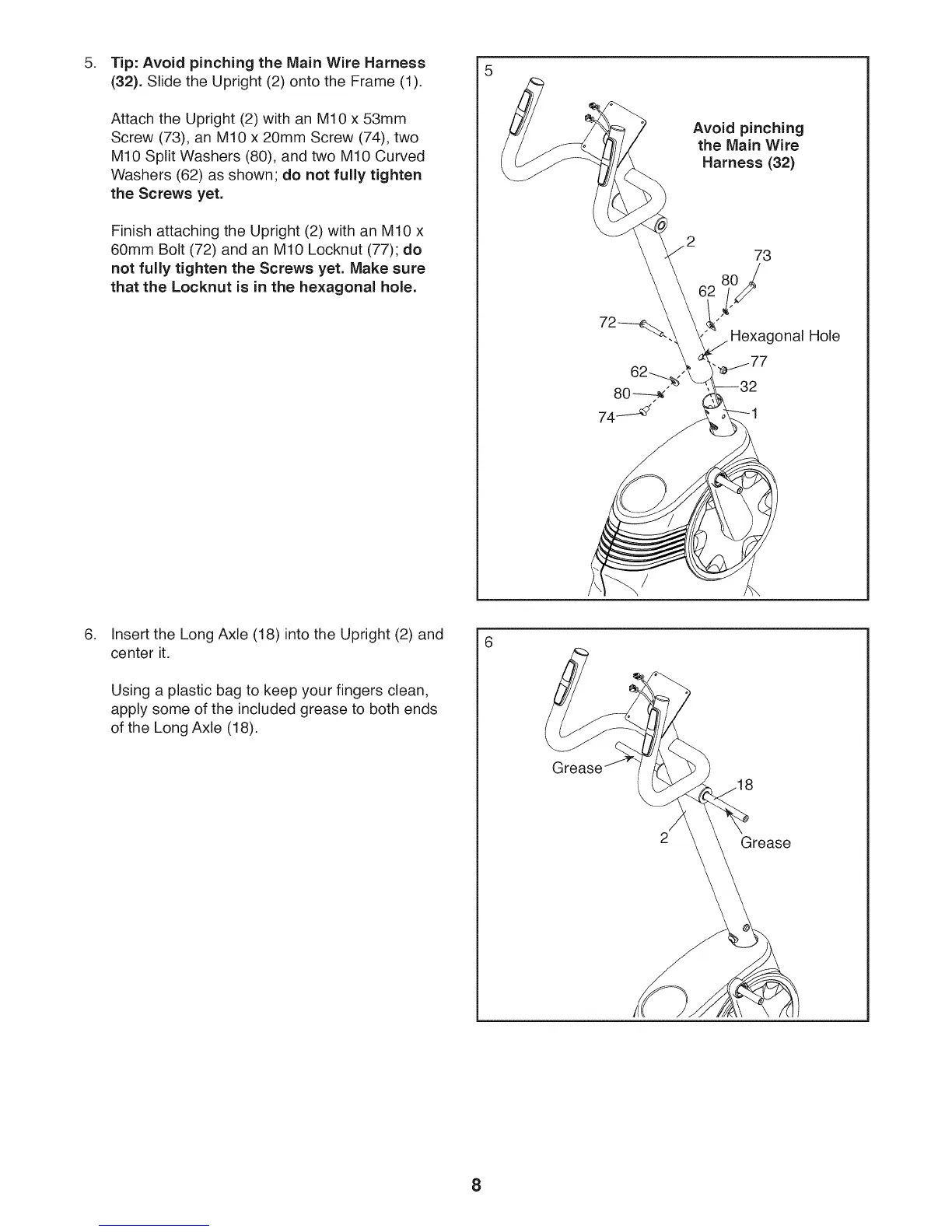 Insert the Long Axle (18) into the Upright (2) and