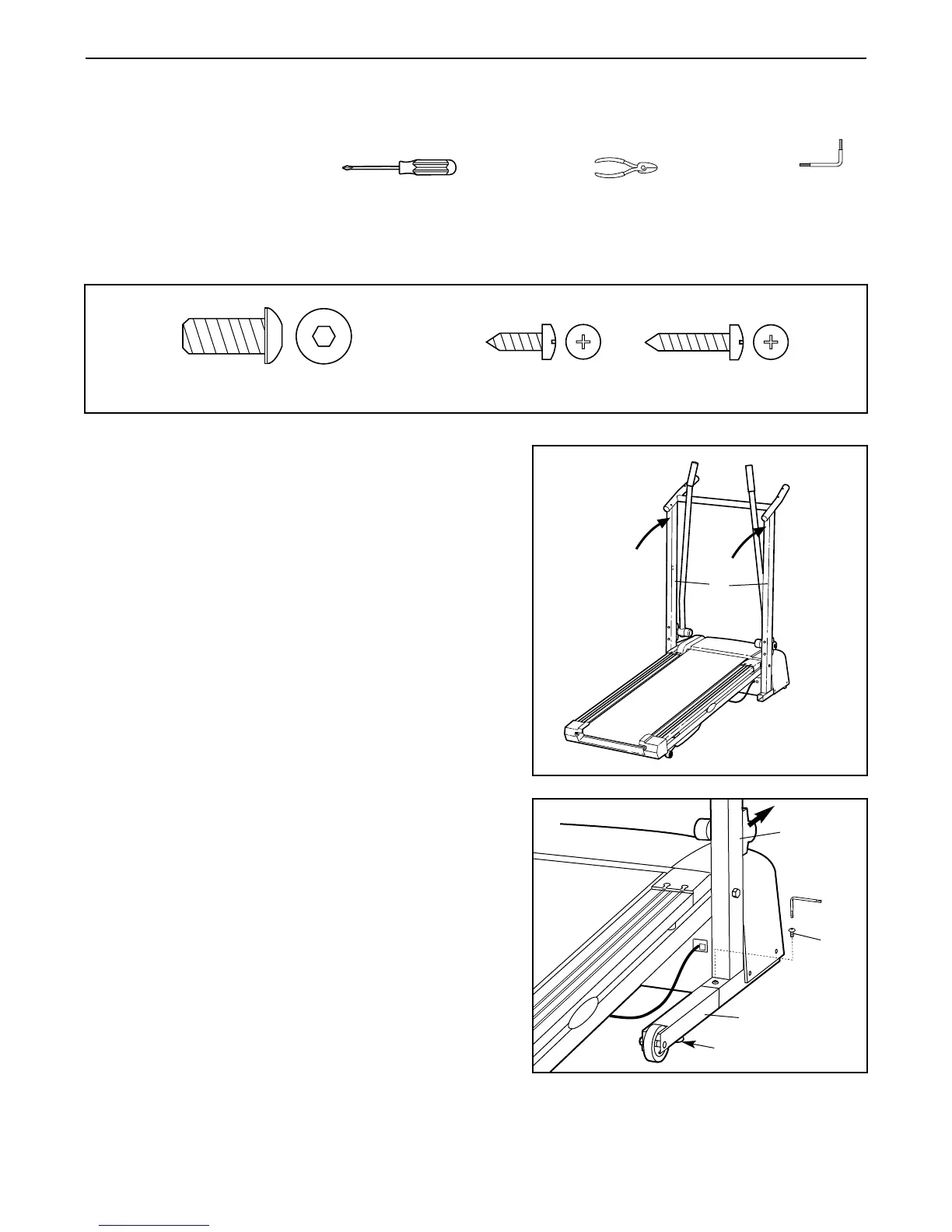 Assembly requires two people. Set the treadmill in a cleared area and remove all packing materials. Do not
