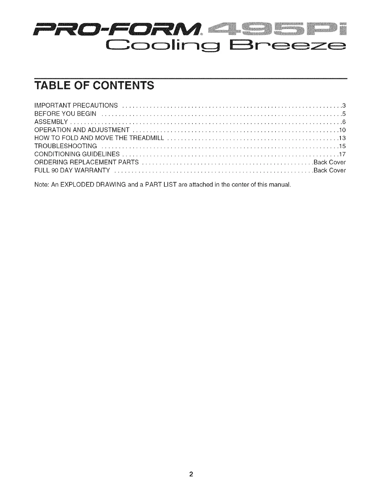 Note: An EXPLODED DRAWING and a PART LiST are attached in the center of this manual.