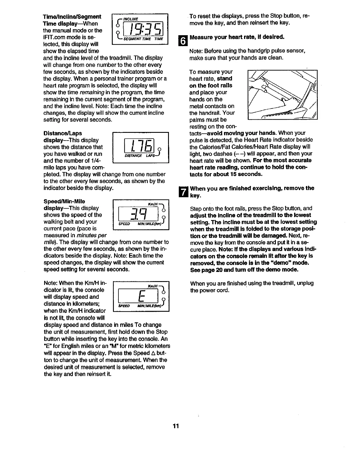 and the incline level of the treadmill. The display