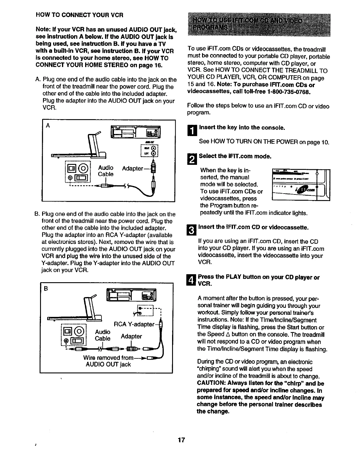 VCR. See HOW TO CONNECT THE TREADMILL TO