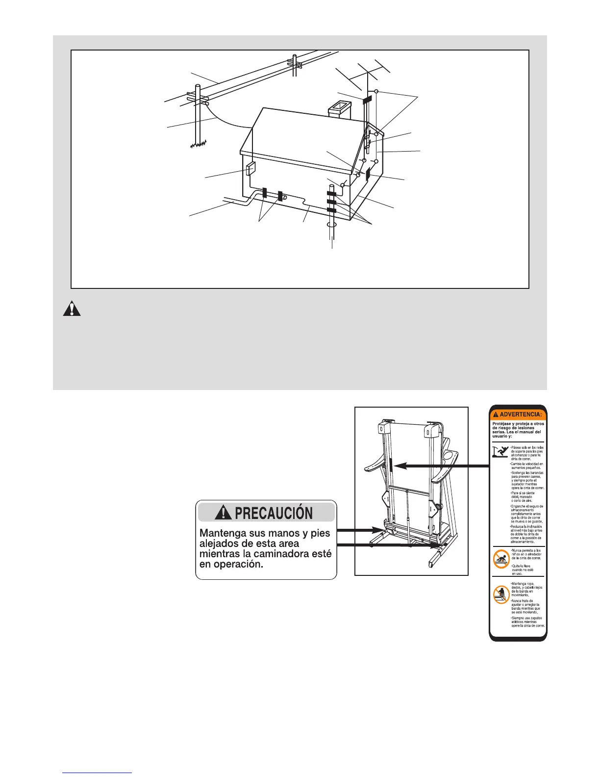 presione las calcomanías de advertencia de tal manera que