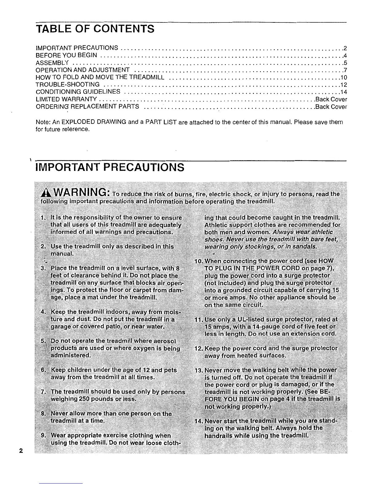 Pro-Form 585 TL - IMPORTANT PRECAUTIONS; General Safety Precautions