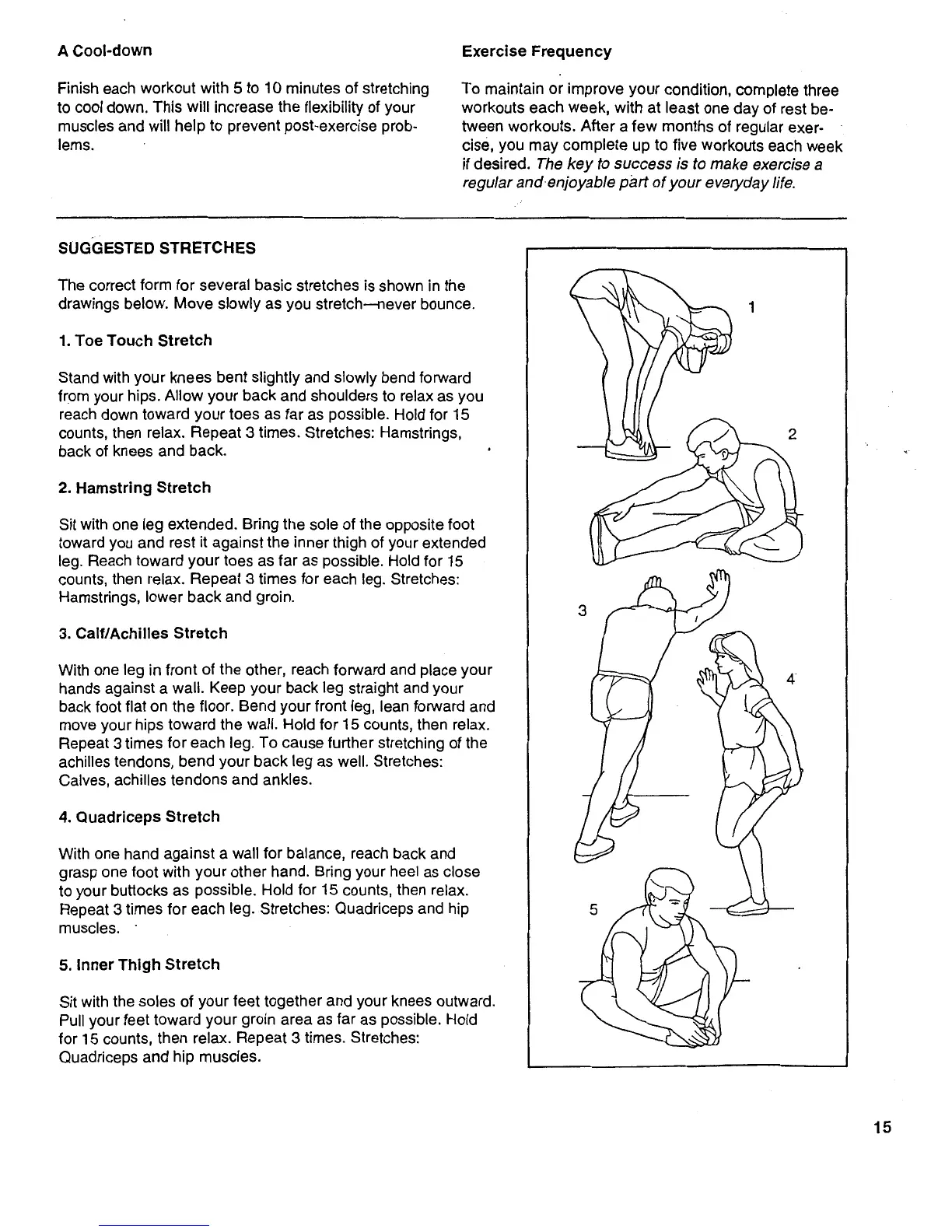 Pro-Form 585tl - Cool-down Stretching Routine; Recommended Exercise Frequency; Suggested Stretches for Users