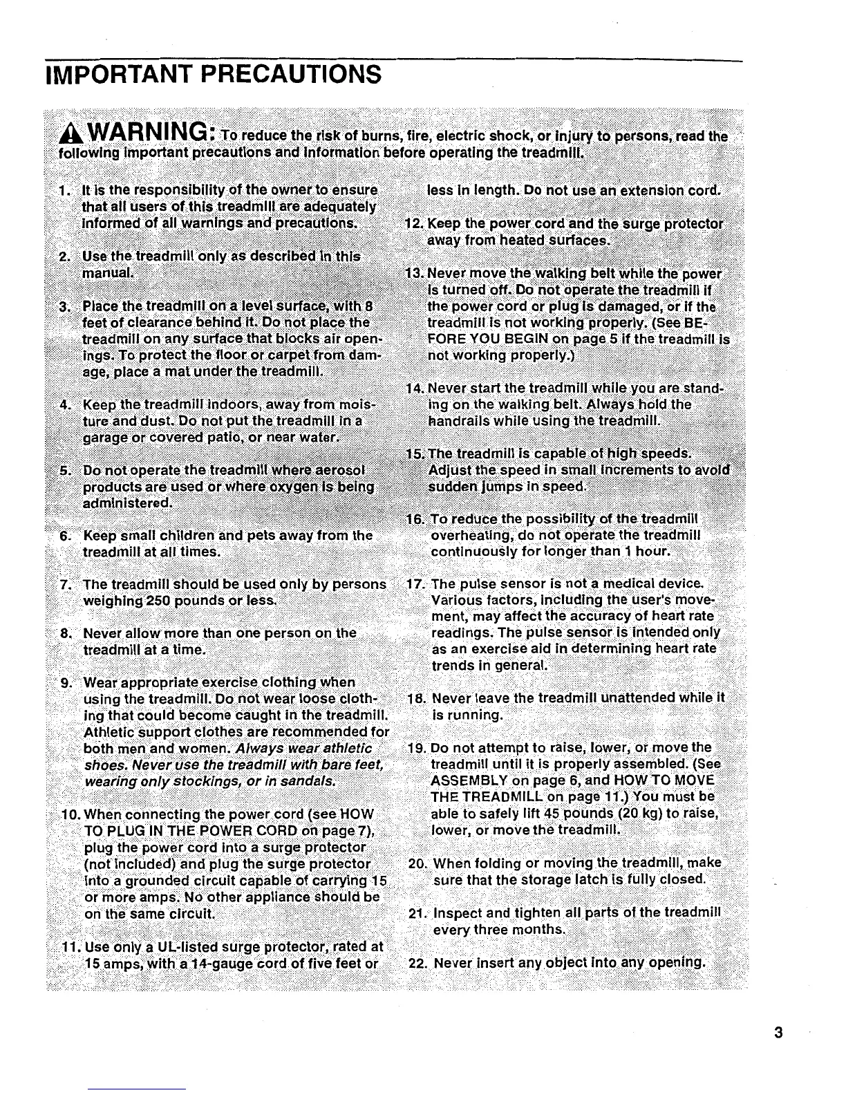 Pro-Form 585tl - Important Precautions for Treadmill Use
