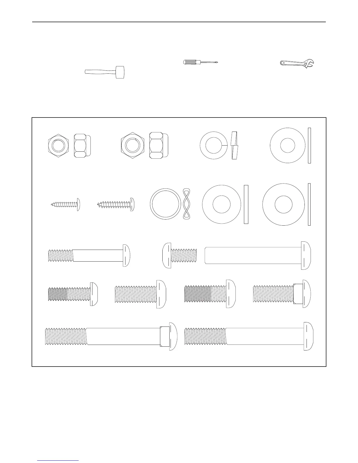 Use the drawings below to identify the small parts used for assembly. The number in parenthesis below each