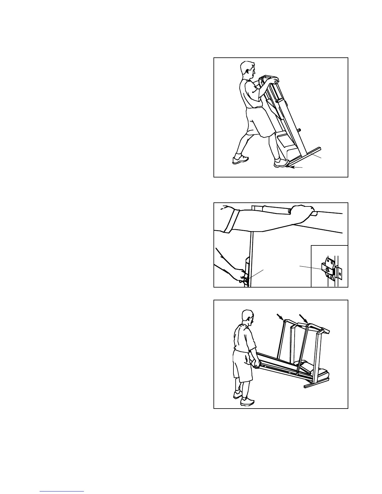 Avant de déplacer le tapis roulant, placez-le dans sa position de rangement comme décrit à la page précédente.