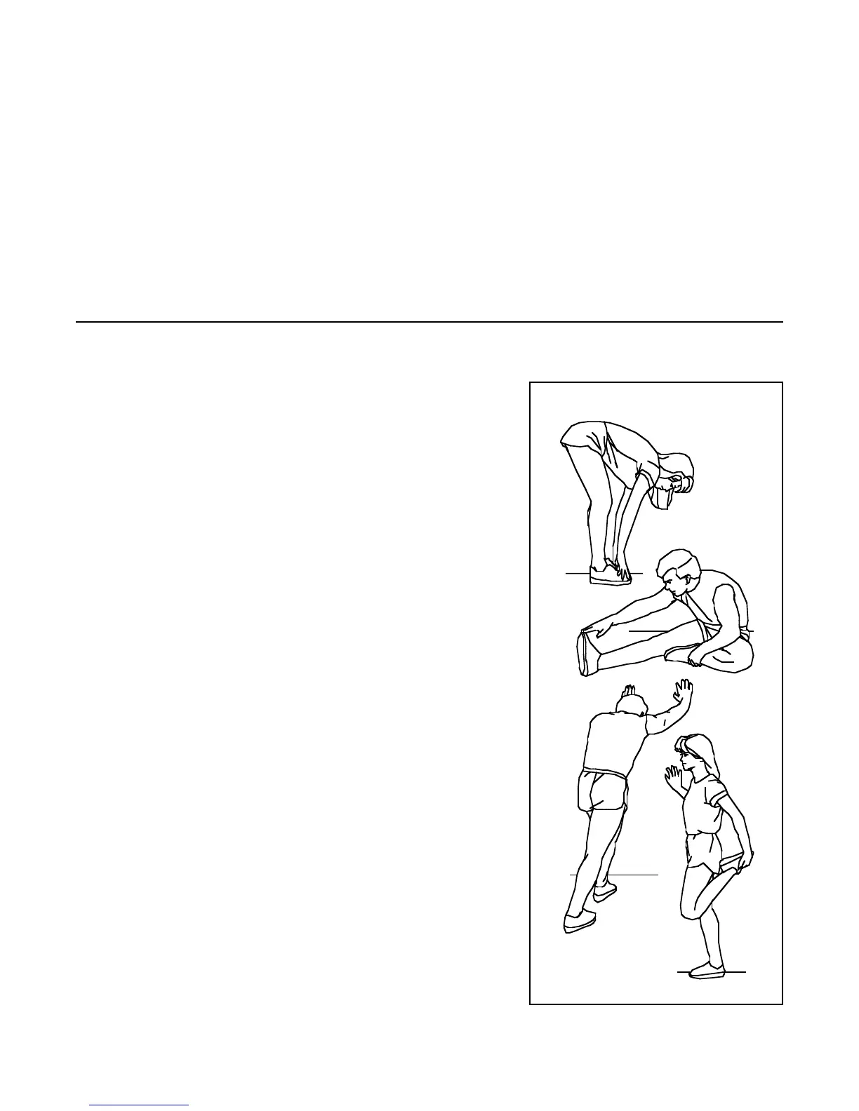 Les exercices d'étirement suivants constituent un bon échauffement.