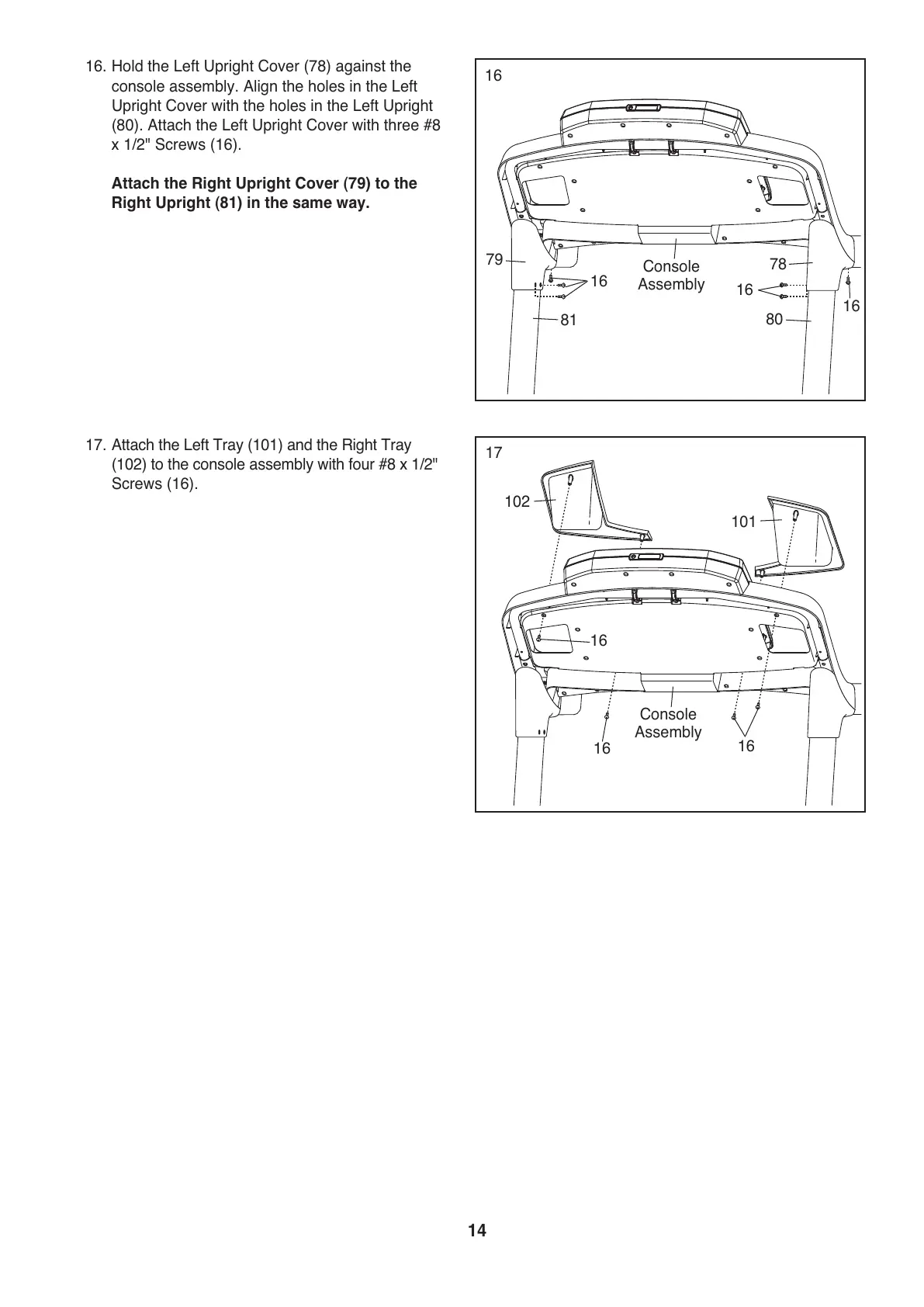 (102) to the console assembly with four #8 x 1/2"