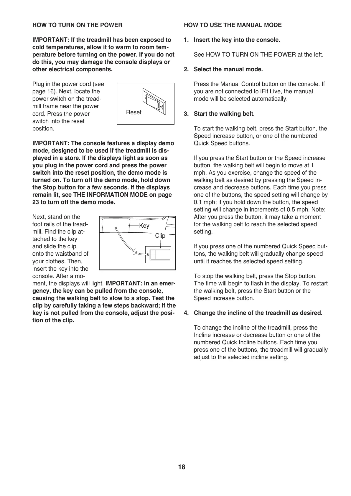 IMPORTANT: If the treadmill has been exposed to