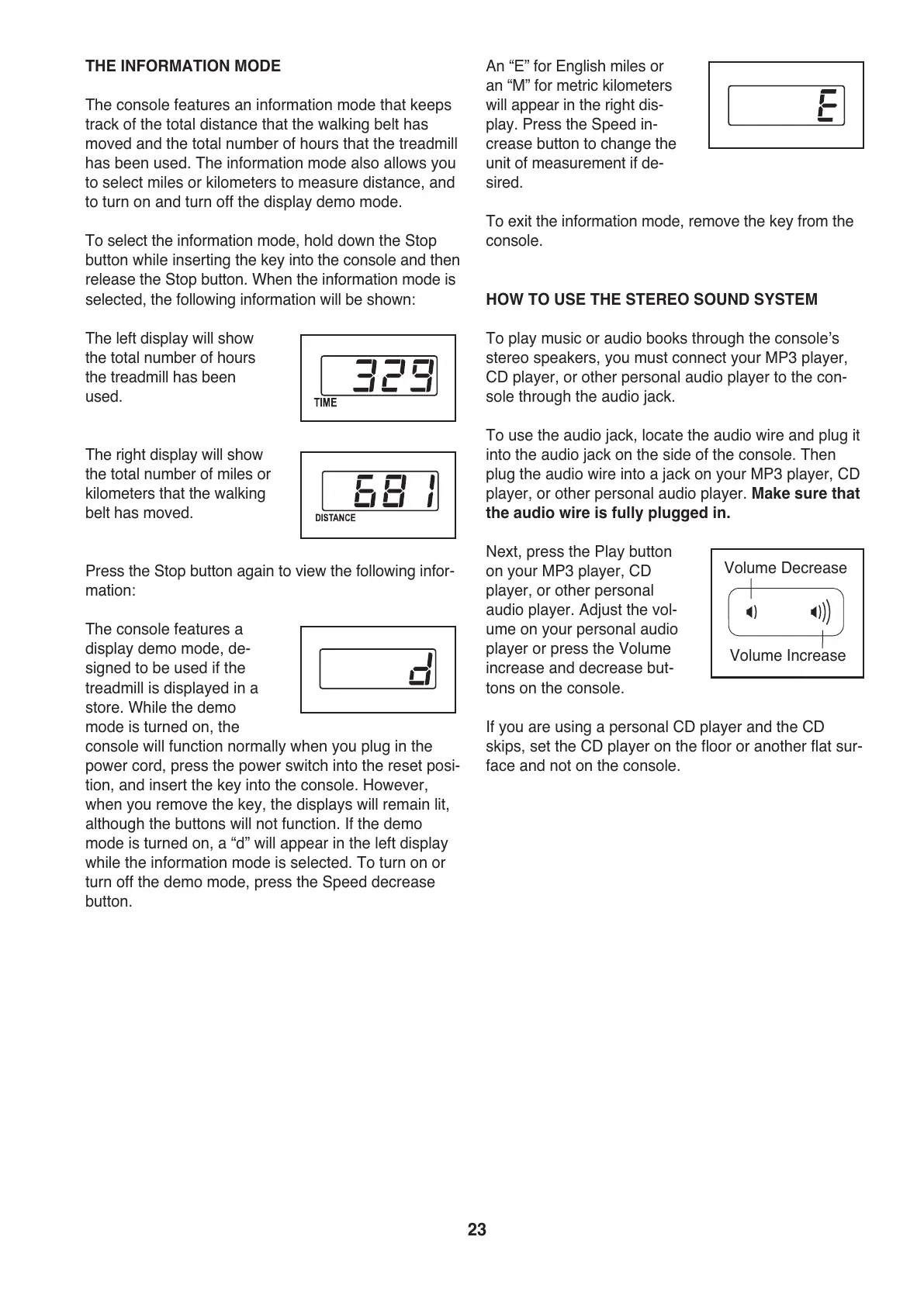 audio player. Adjust the vol-