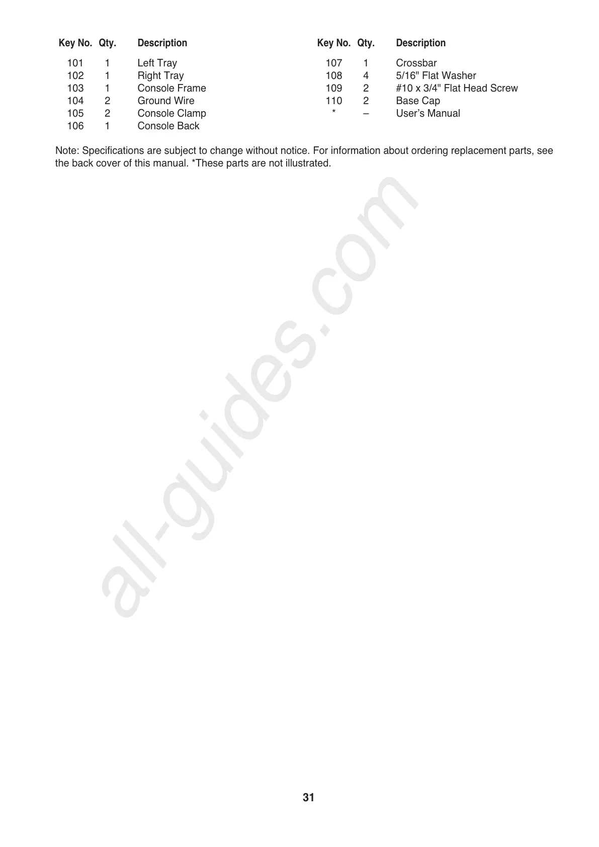 Note: Specifications are subject to change without notice. For information about ordering replacement parts, see