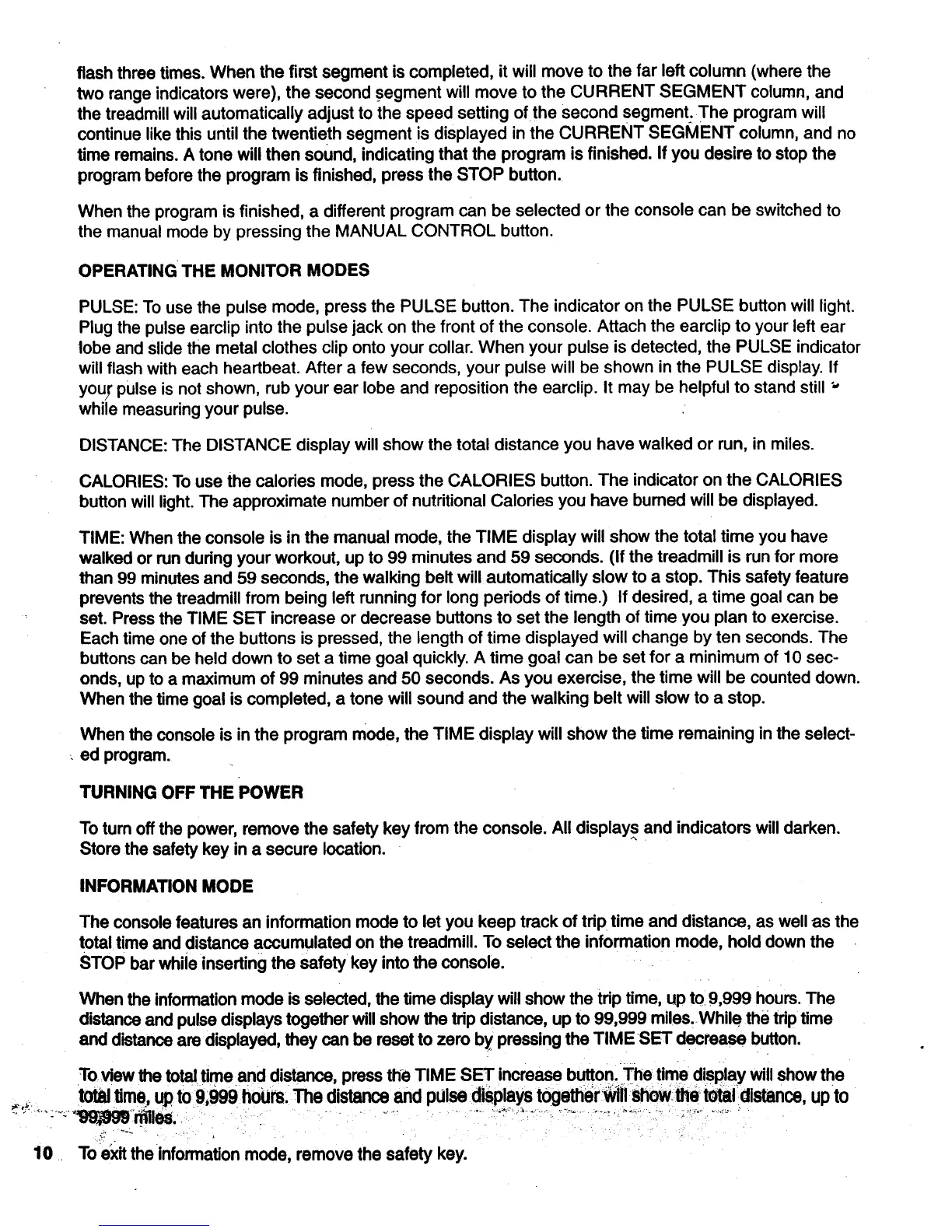 Pro-Form 730 - Operating Monitor Modes; Turning Off the Power; Information Mode
