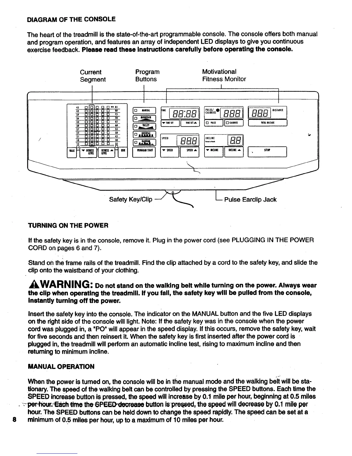 Pro-Form 730 - Console Diagram; Turning On the Power; Manual Operation