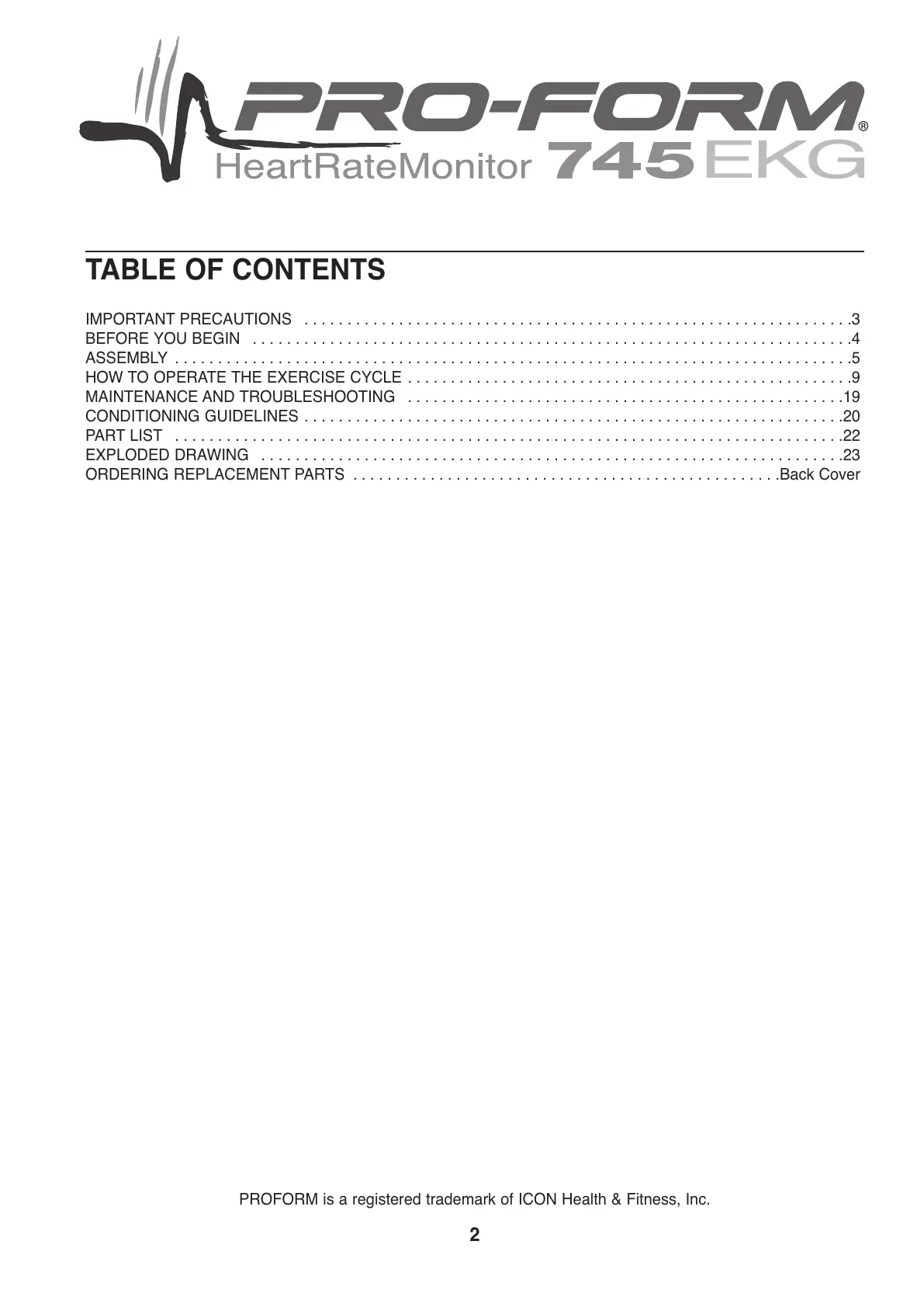 PROFORM is a registered trademark of ICON Health & Fitness, Inc.
