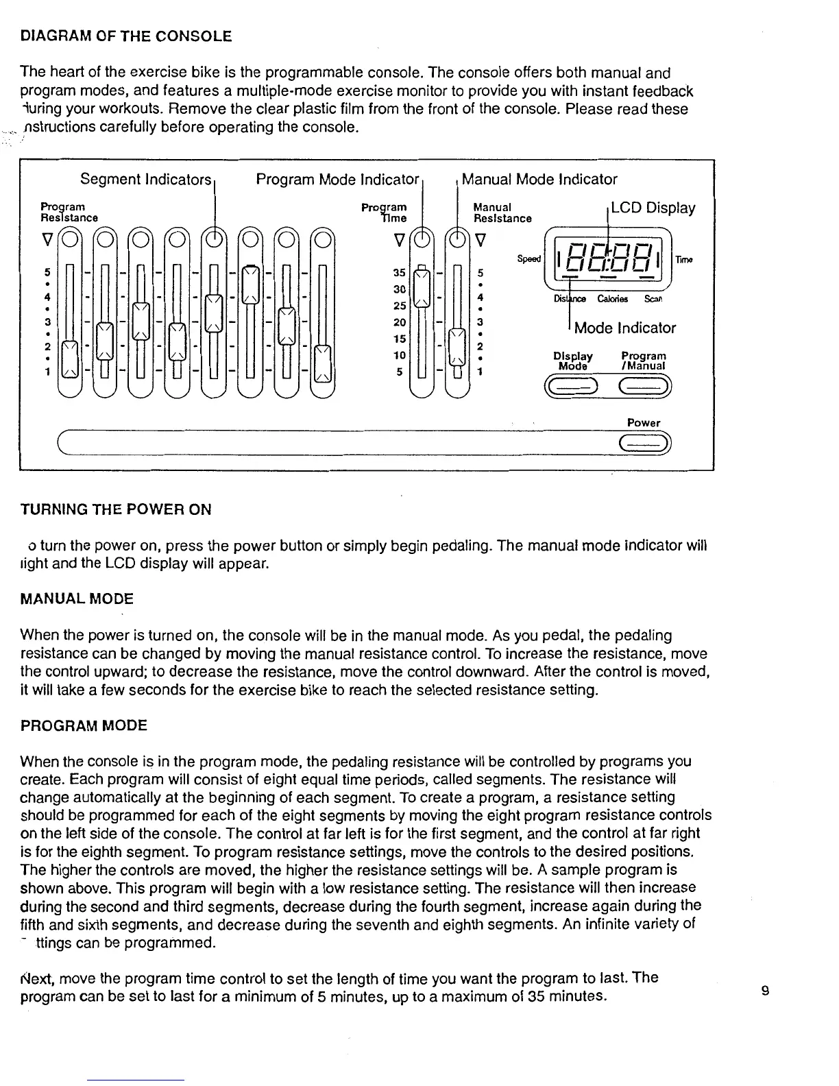Pro-Form 760 - Console Features and Modes; Console Diagram and Manual;Program Modes