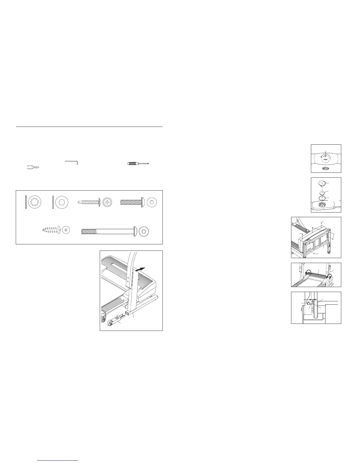 Assembly requires two persons. Set the treadmill in a cleared area and remove all packing materials. Do not
