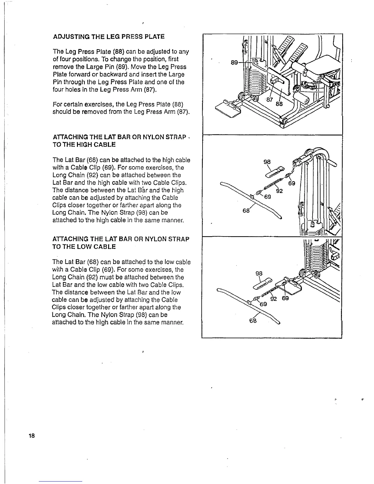 Pro-Form 800 Cs - Equipment Adjustments and Attachments; Leg Press Plate Adjustment; Cable Attachment Guide