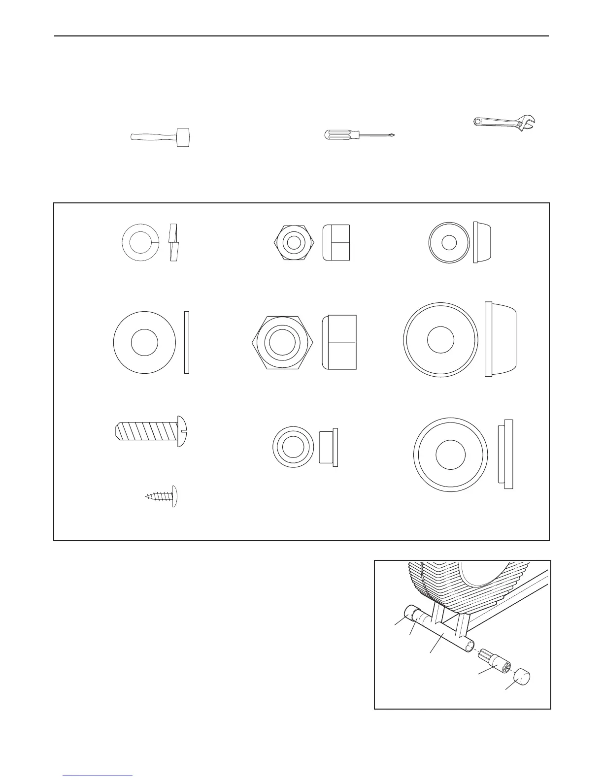 Use the drawings below to identify the small hardware used in assembly. The number in parenthesis beneath
