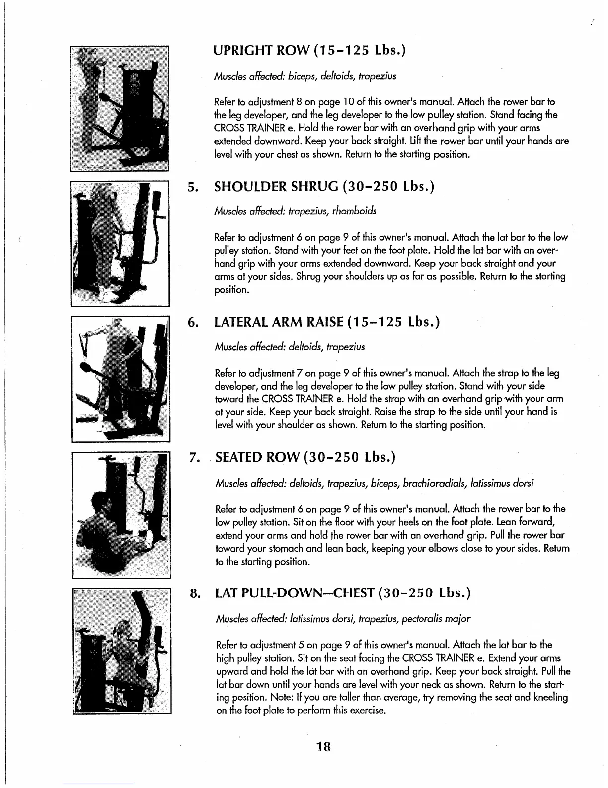 Pro-Form Cross Trainer - Shoulder Shrug; Lateral Arm Raise; Seated Row; Lat Pull-Down Chest