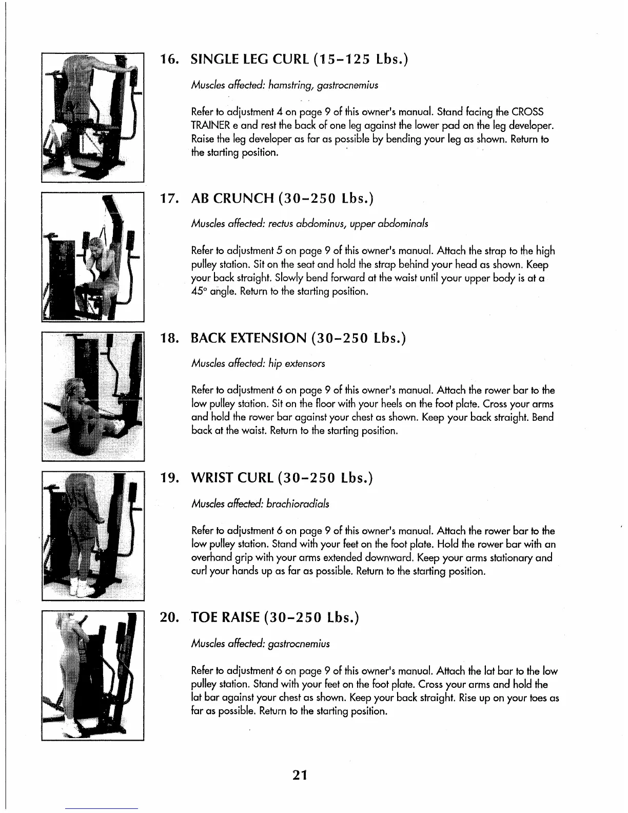 Pro-Form Cross Trainer - Single Leg Curl; AB Crunch; Back Extension; Wrist Curl
