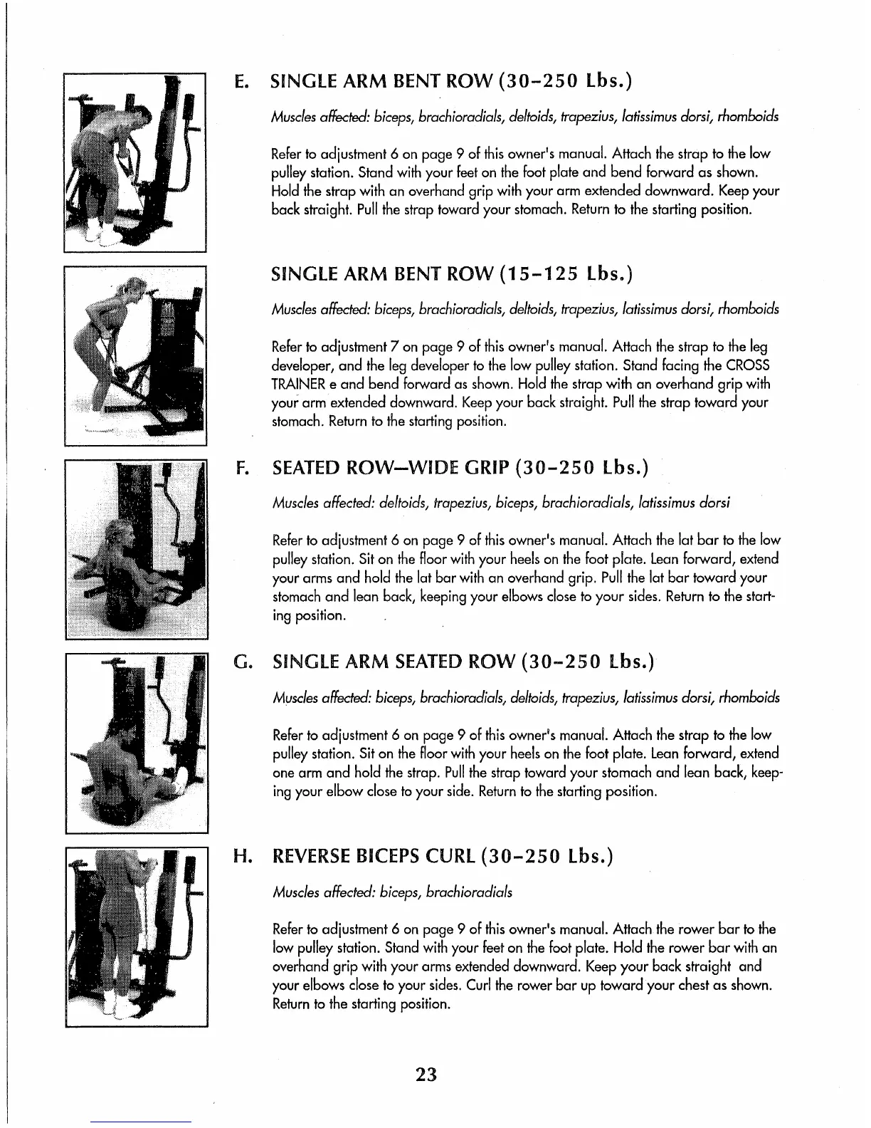 Pro-Form Cross Trainer - Single Arm Bent Row; Seated Row-Wide Grip; Single Arm Seated Row; Reverse Biceps Curl