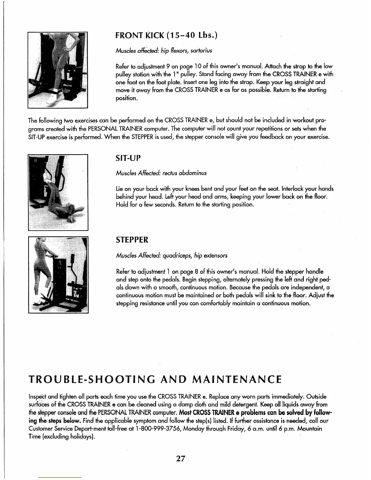 Pro-Form Cross Trainer - Troubleshooting and Maintenance; Sit-Up; Stepper