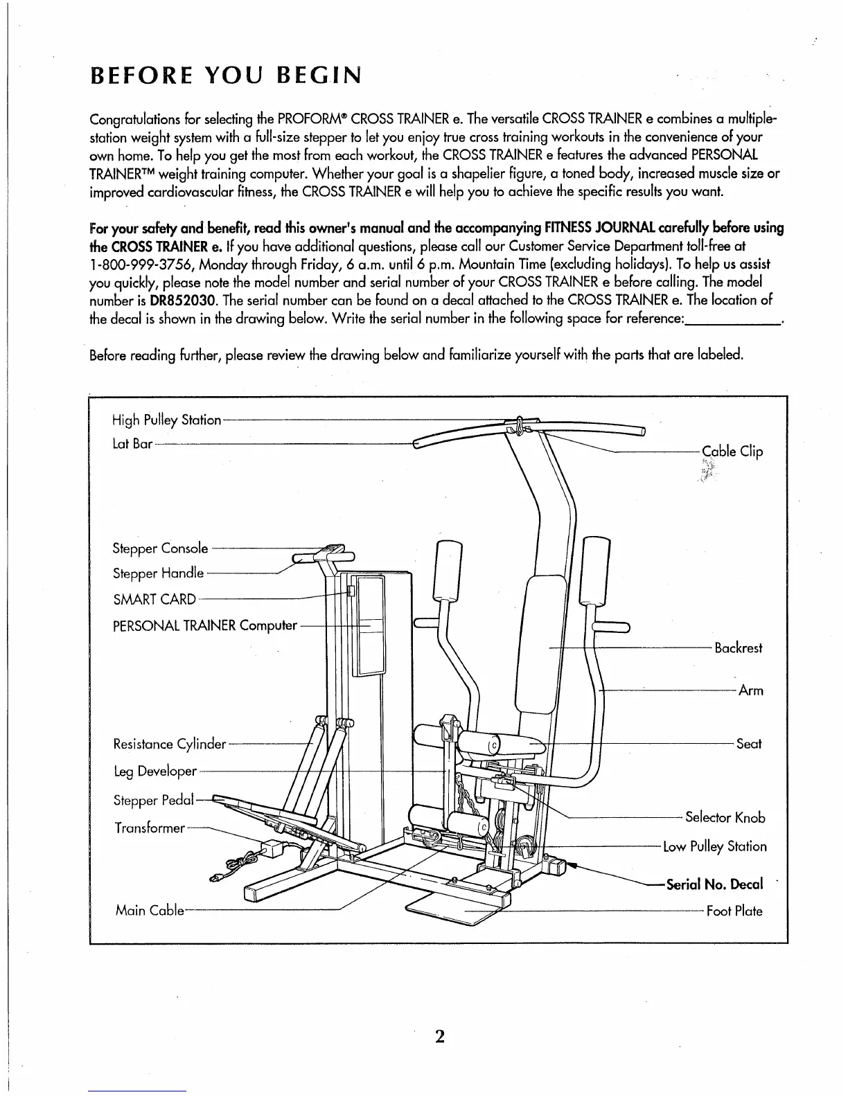 Pro-Form Cross Trainer - Before You Begin; Product Overview