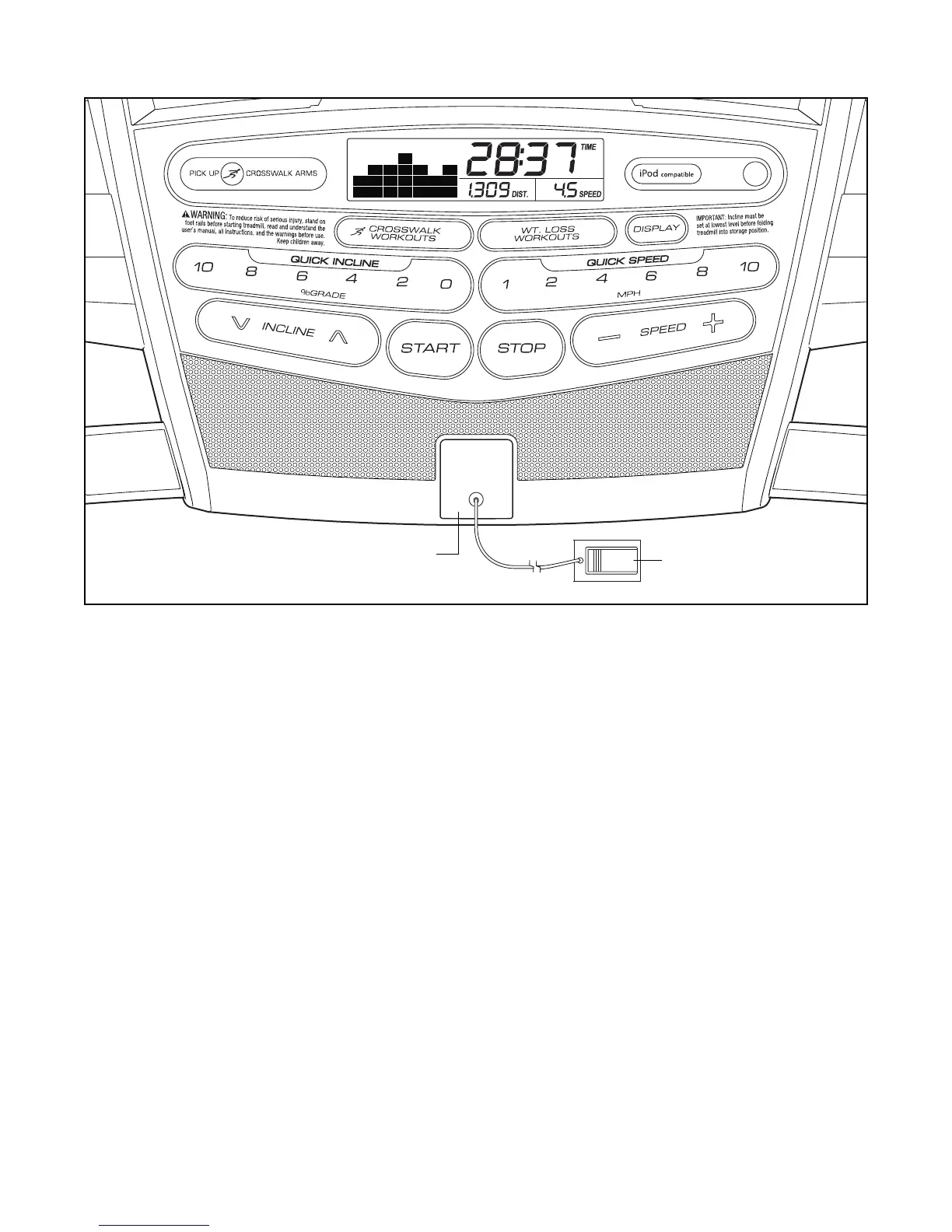Note: The console can display speed and distance