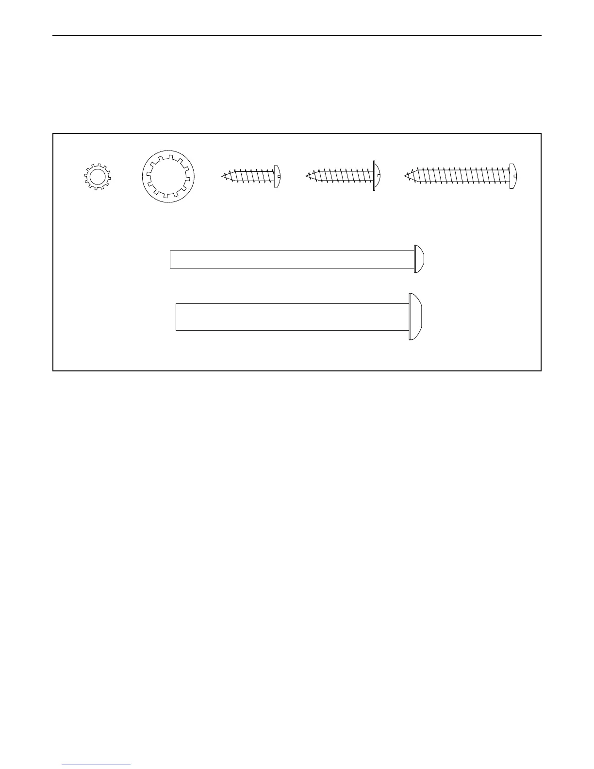 Use the drawings below to identify small parts used for assembly. The number in parentheses below each draw-