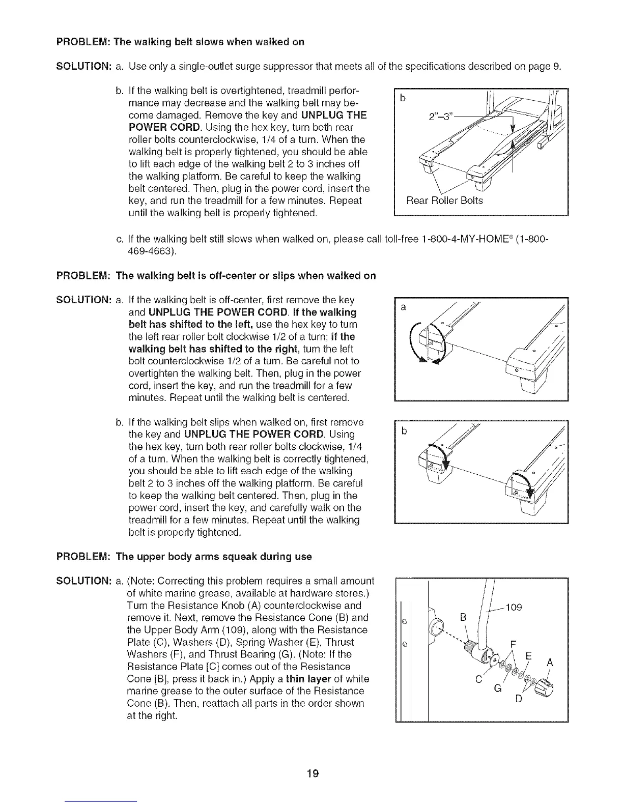 c. If the walking belt still slows when walked on, please call toll-free 1-800-4-MY-HOME _ (1-800-